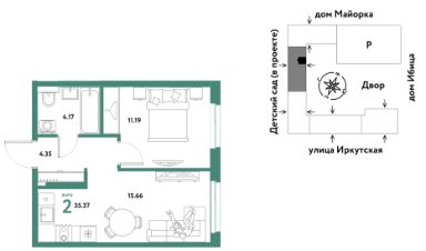 Продаётся 2-комнатная квартира в строящемся доме (Дом Тенерифе (ГП-2Я)), срок сдачи: IV-кв. 2027, общей площадью 35.37 кв.м., на 13 этаже. Новый жилой комплекс "Остров-сад" от Специализированного застройщика "Страна. Коммунистическая" расположен по адресу: г. Тюмень, по ул. Ярославская.