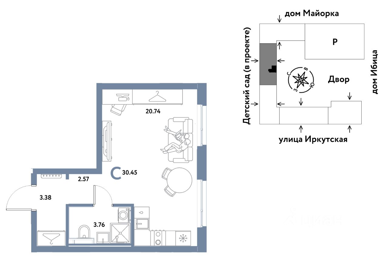 Продаётся студия в строящемся доме (Дом Тенерифе (ГП-2Я)), срок сдачи: IV-кв. 2027, общей площадью 30.45 кв.м., на 14 этаже. Новый жилой комплекс "Остров-сад" от Специализированного застройщика "Страна. Коммунистическая" расположен по адресу: г. Тюмень, по ул. Ярославская.