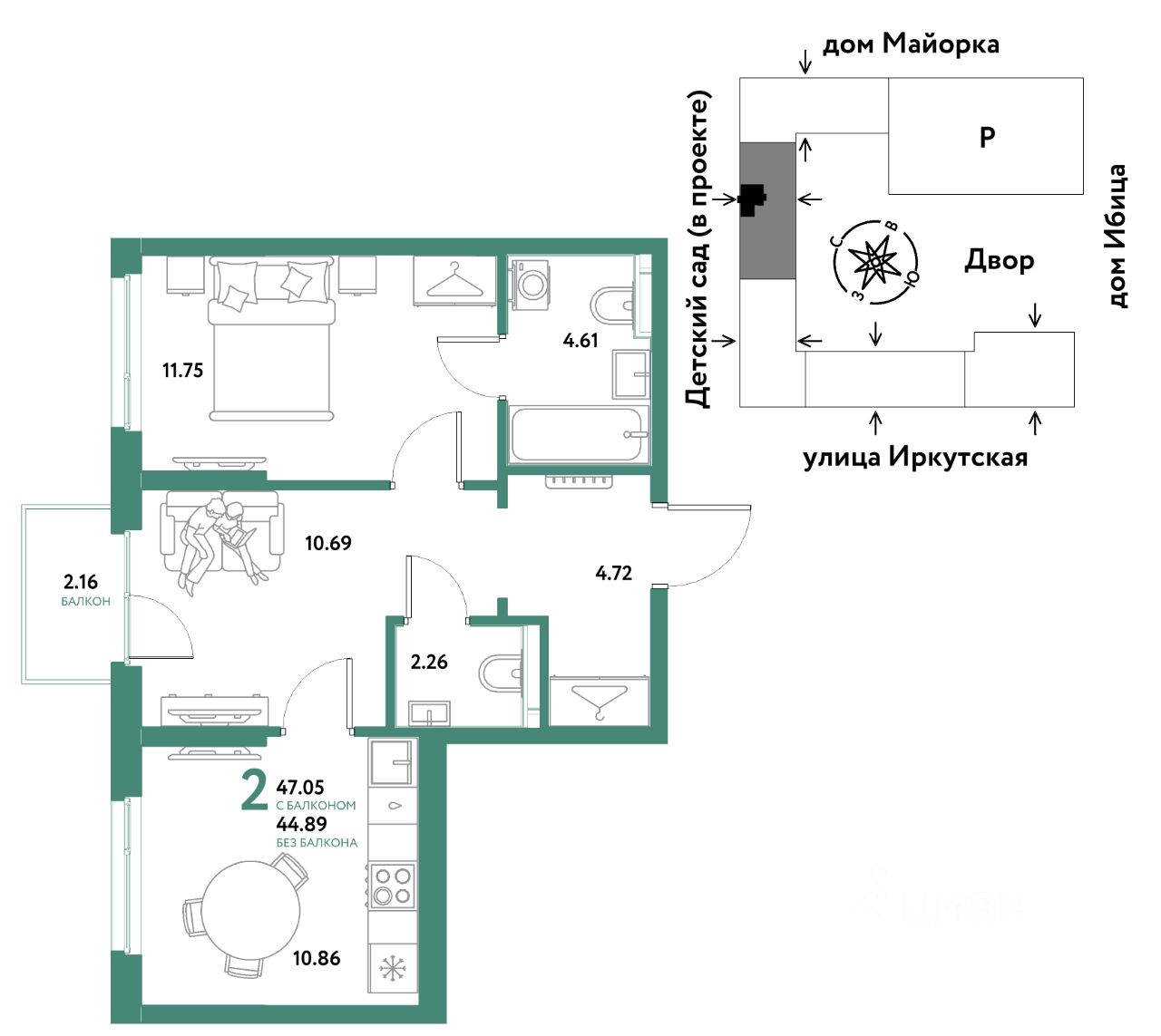 47,05 м²