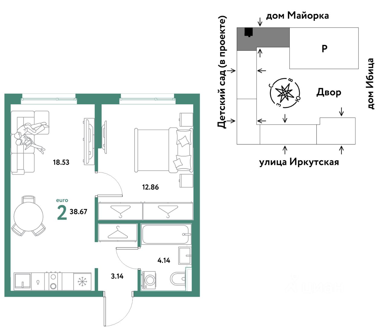 Продаётся 2-комнатная квартира в строящемся доме (Дом Тенерифе (ГП-2Я)), срок сдачи: IV-кв. 2027, общей площадью 38.67 кв.м., на 2 этаже. Новый жилой комплекс "Остров-сад" от Специализированного застройщика "Страна. Коммунистическая" расположен по адресу: г. Тюмень, по ул. Ярославская.