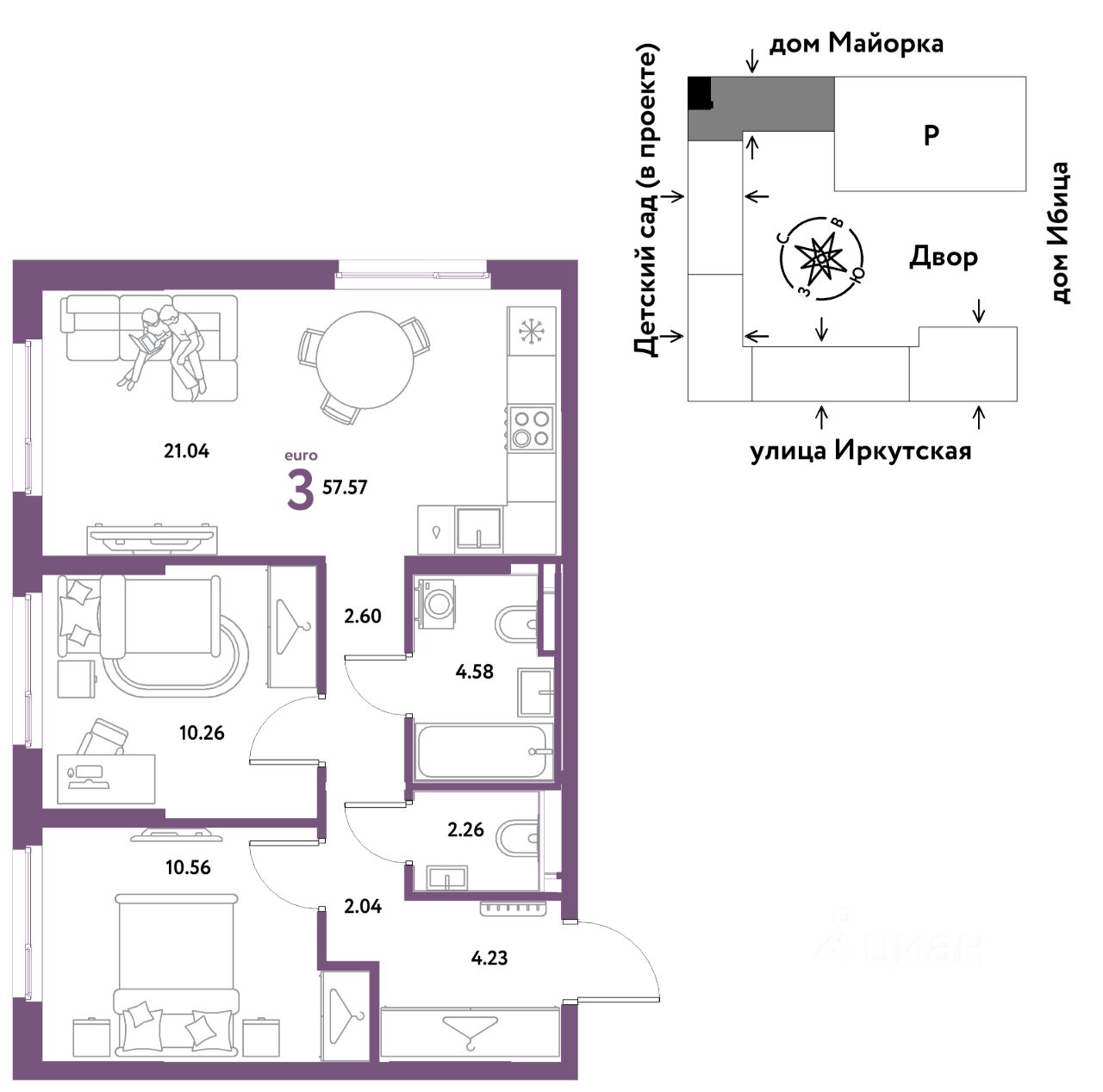 Продаётся 3-комнатная квартира в строящемся доме (Дом Тенерифе (ГП-2Я)), срок сдачи: IV-кв. 2027, общей площадью 57.57 кв.м., на 13 этаже. Новый жилой комплекс "Остров-сад" от Специализированного застройщика "Страна. Коммунистическая" расположен по адресу: г. Тюмень, по ул. Ярославская.