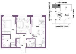 Продаётся 3-комнатная квартира в строящемся доме (Дом Тенерифе (ГП-2Я)), срок сдачи: IV-кв. 2027, общей площадью 55.33 кв.м., на 13 этаже. Новый жилой комплекс "Остров-сад" от Специализированного застройщика "Страна. Коммунистическая" расположен по адресу: г. Тюмень, по ул. Ярославская.