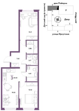Продаётся 3-комнатная квартира в строящемся доме (Дом Тенерифе (ГП-2Я)), срок сдачи: IV-кв. 2027, общей площадью 64.43 кв.м., на 13 этаже. Новый жилой комплекс "Остров-сад" от Специализированного застройщика "Страна. Коммунистическая" расположен по адресу: г. Тюмень, по ул. Ярославская.