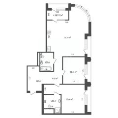 Общая площадь квартиры составляет 86 м², что обеспечивает комфорт и свободу для жизни. Всего 4 квартиры на площадке гарантируют тишину и спокойствие. Высота потолков в 3,10 м создает ощущение простора и света.