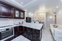 Почти вся мебель, представленная на фотографиях, остается в подарок новым владельцам: эксклюзивный кухонный гарнитур с итальянскими деревянными фасадами и каменной столешницей, встроенные шкафы, техника Bosch, мягкая мебель и стильные аксессуары.