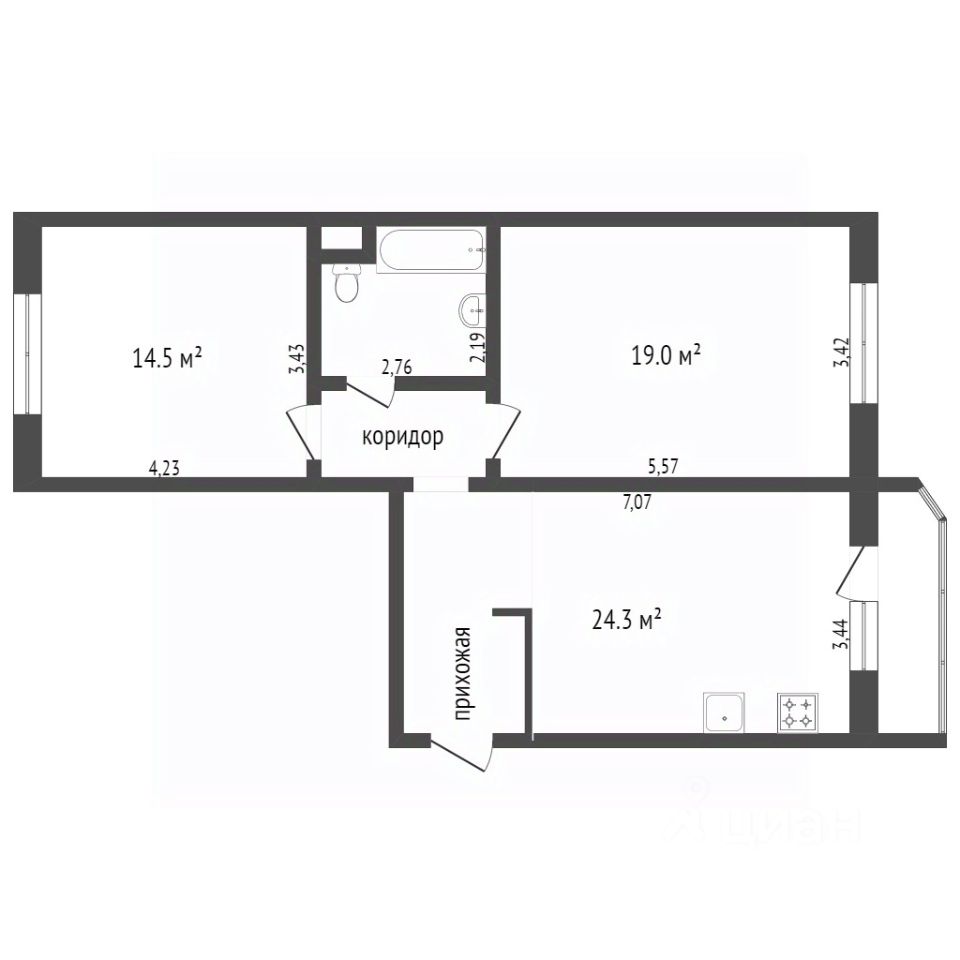 Удачная планировка квартиры разделяет пространство на две функциональные зоны: общественную и приватную. Огромная кухня-гостиная площадью 24,3 кв.м. с выходом на балкон станет идеальным местом для встреч с друзьями и семейных вечеров. На балконе организован уютный рабочий кабинет с тёплым полом.