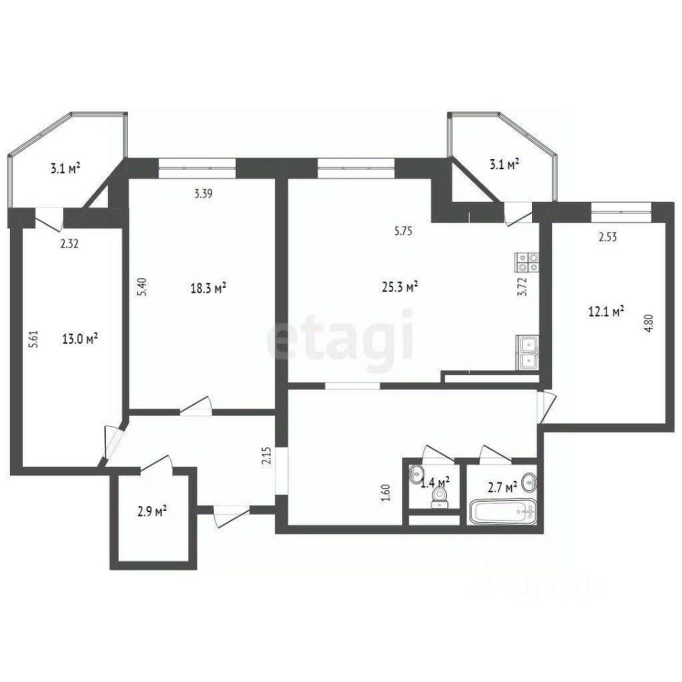 3 КОМНАТНАЯ КВАРТИРА С УНИКАЛЬНОЙ ПЛАНИРОВКОЙ!
