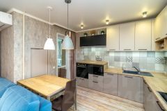 В квартире выполнен капитальный ремонт с применением высококачественных материалов: заменена стяжка пола, полностью обновлена электрическая разводка с увеличенным количеством розеток и разведением интернет-кабелей. Для всесезонного комфорта установлены системы теплого пола в санузлах и в зоне готовки, а также накопительный бойлер на 80 литров, обеспечивающий горячее водоснабжение на время отключения. Оба балкона застеклены. Солнечная сторона обеспечивает прекрасную естественную освещенность в течение дня. При продаже остается вся корпусная мебель на фурнитуре Blum и встроенная техника Bosch и Samsung, что позволяет заехать в квартиру сразу после сделки.