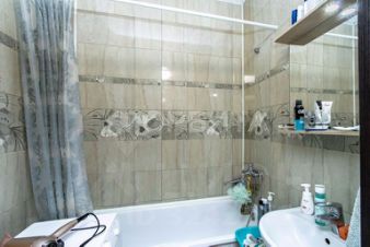 В квартире выполнен ремонт от застройщика в нейтральных оттенках. На полу линолеум, натяжные потолки, на стенах обои. Окна выходят на две стороны, с одной стороны открывается потрясающий вид на районы города, а с другой на реку.