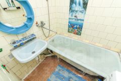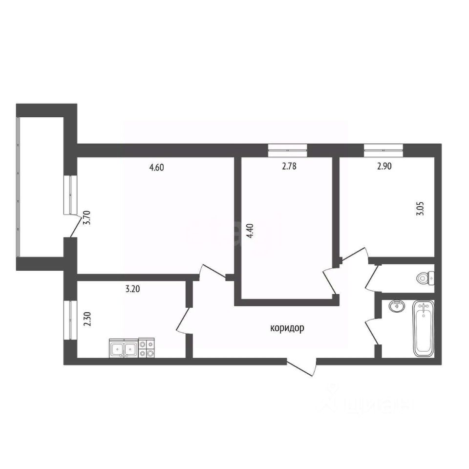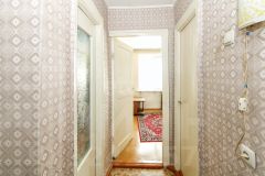 Площадь 61 м2, три комнаты по 17 м2, 12.2 м2, 8.8 м2. Кухня 7.4 м2. Санузел раздельный (1.3 м2, 2.9 м2). Балкон (5.2 м2) просторный, обшит вагонкой, застеклен. Коридор 11.4 м2, можно обустроить зону хранения. Потолки 2,50.