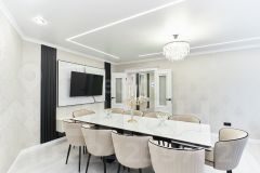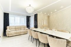 Просторная 4х-комнатная квартира площадью 105 м² расположена в кирпичном доме с хорошей звукоизоляцией и надежными коммуникациями. Объект полностью готов к проживанию: выполнен качественный современный ремонт с использованием практичных материалов нейтральных тонов, что позволяет легко адаптировать пространство под любой стиль интерьера. Планировка включает три изолированные спальни, отдельную гостиную и кухню, что обеспечивает комфортное размещение семьи или возможность организации кабинета. Все помещения хорошо освещены за счет грамотного расположения окон. В квартире остается новая мебель и техника, включая встроенную кухонную гарнитуру с плитой, вытяжкой, духовым шкафом и посудомоечной машиной, а также стиральную машину — все приборы не были в эксплуатации. Санузлы оснащены современной сантехникой, проведена качественная разводка электрики с достаточным количеством розеток. Дом расположен в районе с развитой инфраструктурой: в шаговой доступности находятся школа, детский сад, аптеки и магазины повседневного спроса. Хорошая транспортная доступность обеспечивает быстрый выезд в другие районы города. Двор благоустроен, предусмотрены парковочные места. Объект подойдет как для постоянного проживания семьи, так и для долгосрочной аренды благодаря удачному расположению и продуманной планировке. Квартира не требует дополнительных вложений — достаточно заехать с личными вещами.