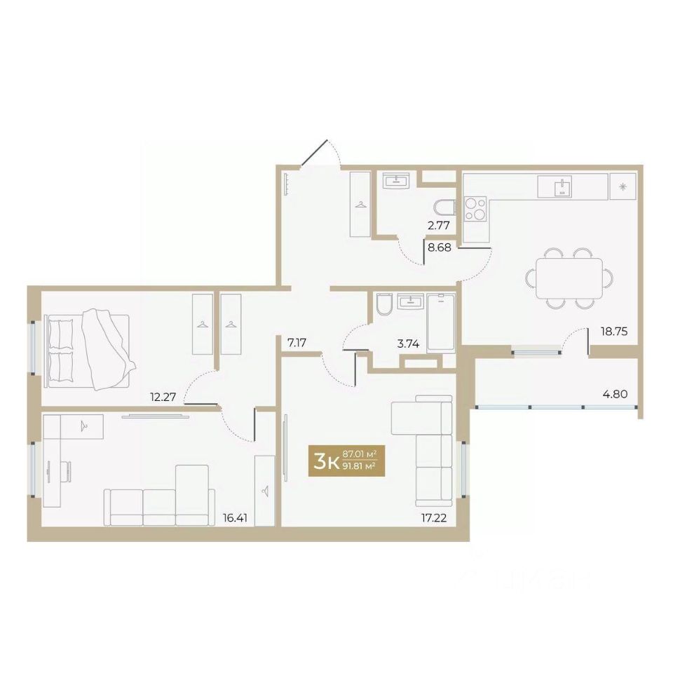 Продаётся 3-комнатная квартира в строящемся доме (Дом 5), срок сдачи: I-кв. 2026, общей площадью 87.01 кв.м., на 17 этаже. Новый жилой комплекс "Спутник-2" от специализированного застройщика "Спутник-2" расположен по адресу: г. Тюмень, по ул. Алматинская.
