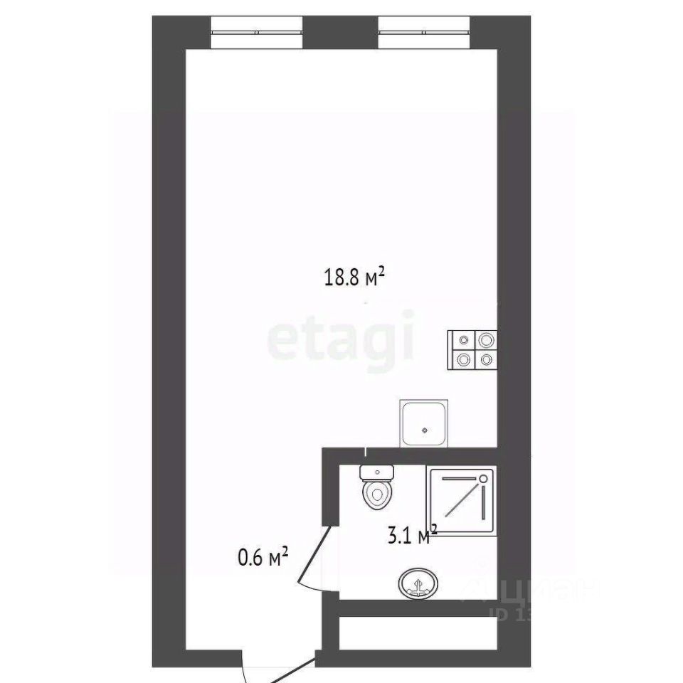 О КВАРТИРЕ: Студия 22,5 кв.м. в улучшенной черновой отделке. Высота потолков 2,7м.