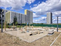 Благоустроенная территория: зелёные зоны, дорожки, освещение и видеонаблюдение.