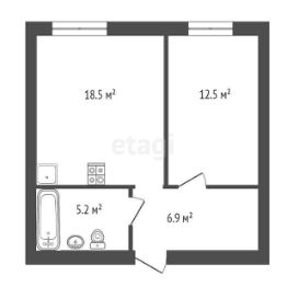 Уютная 1-комнатная квартира площадью 43,1 квадратных метров, 3 этаж.