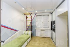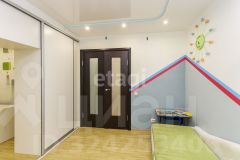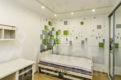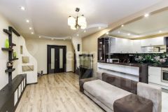 На полу во всех комнатах ламинат, зона кухни керамогранит, потолок натяжной только в детской спальне, в других комнатах - гипсокартон, с точечными светильниками. Горизонтальная разводка отопления.