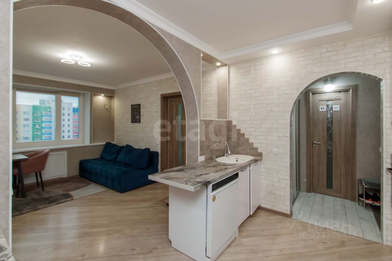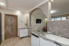 В квартире выполнен современный качественный ремонт - на стенах обои, на полу ламинат 33 класса. Просторная кухня - гостиная с новым кухонным гарнитуром и встроенной техникой. Вся квартира меблирована.