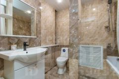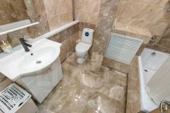 В санузле керамогранит и новая сантехника.