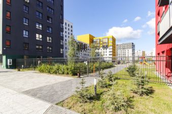 Закрытая территория жилого комплекса — это оазис безопасности и комфорта, где нет места автомобилям. Двор наполнен жизнью: для детей предусмотрены яркие и безопасные игровые площадки, а для активных жителей — спортивные зоны с прорезиненными покрытиями. Безбарьерный вход в подъезд с панорамным остеклением обеспечивает лёгкий доступ для всех жильцов.