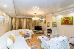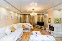 В квартире два санузла, ванная комната 10, 5 кв. м. , сауна (в данный момент используется под библиотеку), камин! (узаконен), один балкон, одна лоджия. Квартира меблированная, люстры (в т. ч. люстра пр-во Италия).