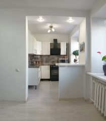 Уютная, теплая, не торцевая, средний этаж. Ремонт выполнен в светлых тонах, проведена заменена электропроводки и канализации. Во всей квартире на полу ламинат, в санузле кафель. При продаже для вас остаются кухонный гарнитур, шкаф в прихожей, в спальне оборудованная гардеробная.