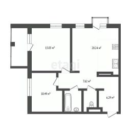 - **Комнаты** 15,08 м² и 10,49 м² (отдельные, изолированные)
