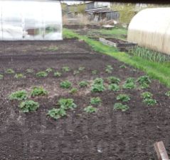 Рядом с домом находятся два небольших земельных участка, на которых есть теплица, хоз.блок с погребом, гараж. Насаждения: крыжовник, смородина, вишня, клубника, молодая яблоня. Под окнами квартиры - палисадник, где можно выращивать цветы и пряную зелень.