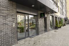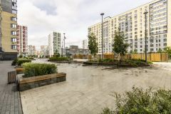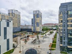 Двор закрыт, оснащен современной детской площадкой, весь утопает в зелени и цветах. По всей территории имеется видеонаблюдение и каждый час патрулируется охраной. Концепция двор без машин, свободное и безопасное пространство вокруг дома и свежий, чистый воздух от реки.