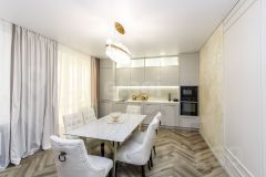 Продается квартира с современным ремонтом формата 2+ с просторными спальнями 12м2 каждая, кухней-гостиной 21,64 м2, двумя санузлами 7,22 и 3,33 м2, функциональным холом 12,38м2 и большим застекленной лоджией 8,03м2. В квартире выполнен ремонт по дизайн проекту, высота потолков составляет 2,8 метра. Окна выполнены из качественного немецкого профиля высотой 1,7 метра, установлены высокоэффективные радиаторы отопления с разводкой по полу. Сам дом выполнен из керамического кирпича, что традиционно помимо эстетической составляющей прекрасно сохраняет тепло зимой, обеспечивает прохладу летом, а так же является хорошим звукоизолирующим материалом. Всего 3 просторные квартиры в подъезде так же положительно влияют на спокойный климат внутри дома и обеспечивает доступную уединенность жильцов. В комплексе есть все необходимое для комфортной современной жизни. Начиная от внешнего вида домов и жилого комплекса в целом, прогулочных маршрутов, детских и спортивных площадок, заканчивая магазинами, аптеками, развивающими центрами и иными объектами инфраструктуры. Жемчужиной района является наличие в шаговой доступности озера Алебашево и размещенным в его окрестностях в будущем Event парк создают неповторимую в целом и уникальную в городе среду для жизни. Близость к деловому центру города и транспортная доступность района так же положительно сказываются при выборе места для жизни. Хорошая транспортная развязка!