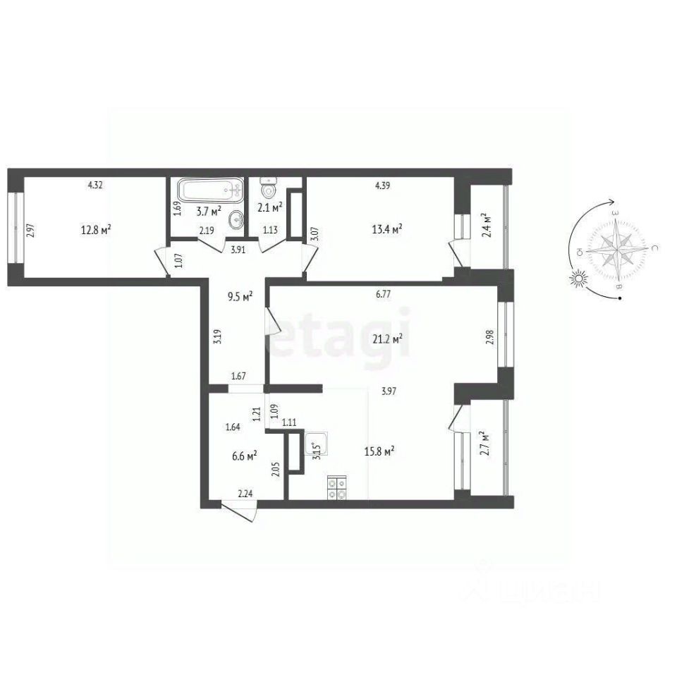 Просторная кухня-гостиная площадью 37 м², где с легкостью разместится обеденная зона и уютный уголок для отдыха.Две изолированные спальни, расположенные на противоположных сторонах квартиры, обеспечивают тишину и уединение.Раздельный санузел и удобная гардеробная все для вашего комфорта.Дизайнерский ремонт выполнен с использованием качественных материалов, а мебель и техника остаются в квартире при продаже.