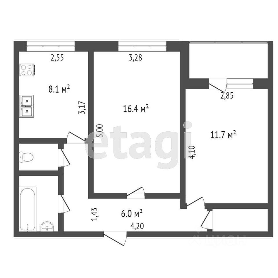 2 изолированные комнаты, кухня, раздельный санузел, кладовая и вместительная прихожая.