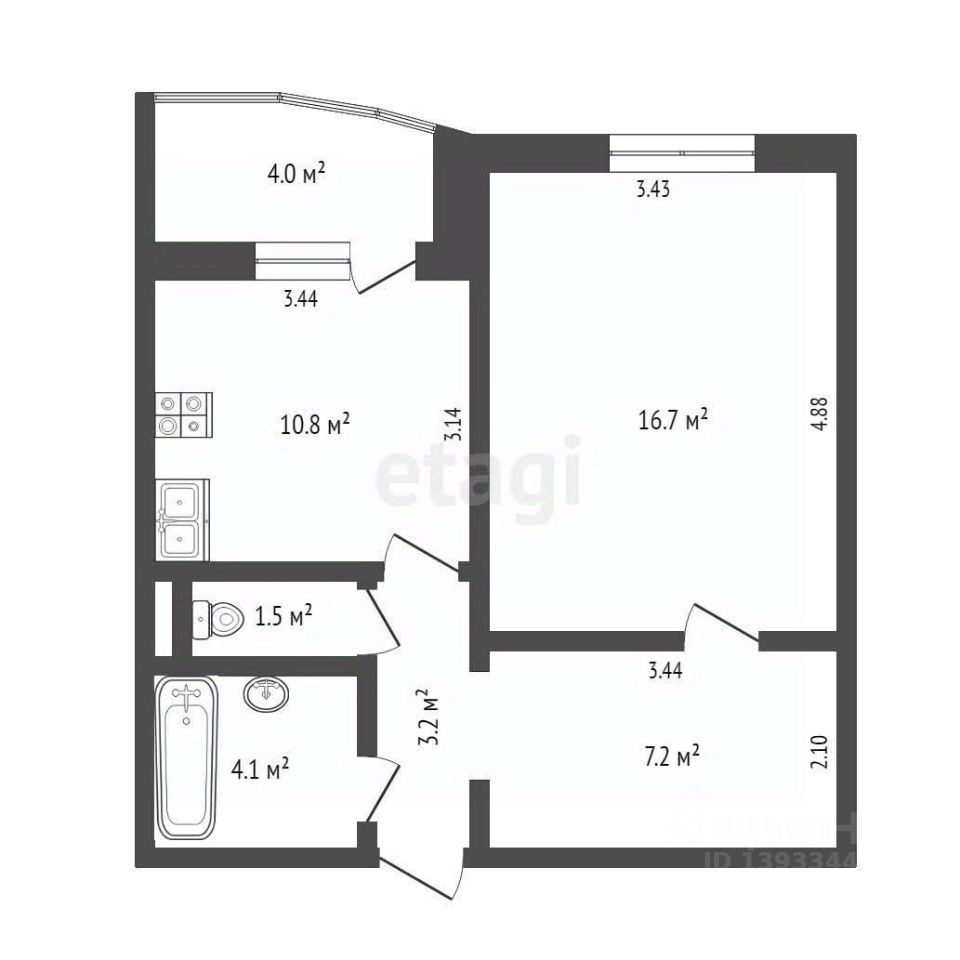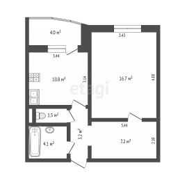 кухню-10,8 кв.м., зал-16,7 кв.м.,