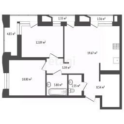 Предлагаем к покупке КВАРТИРУ формата 2+, функциональная планировка- кухня гостиная 19,67 кв.м. и две изолированных спальни, санузел раздельный.