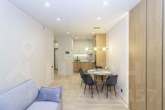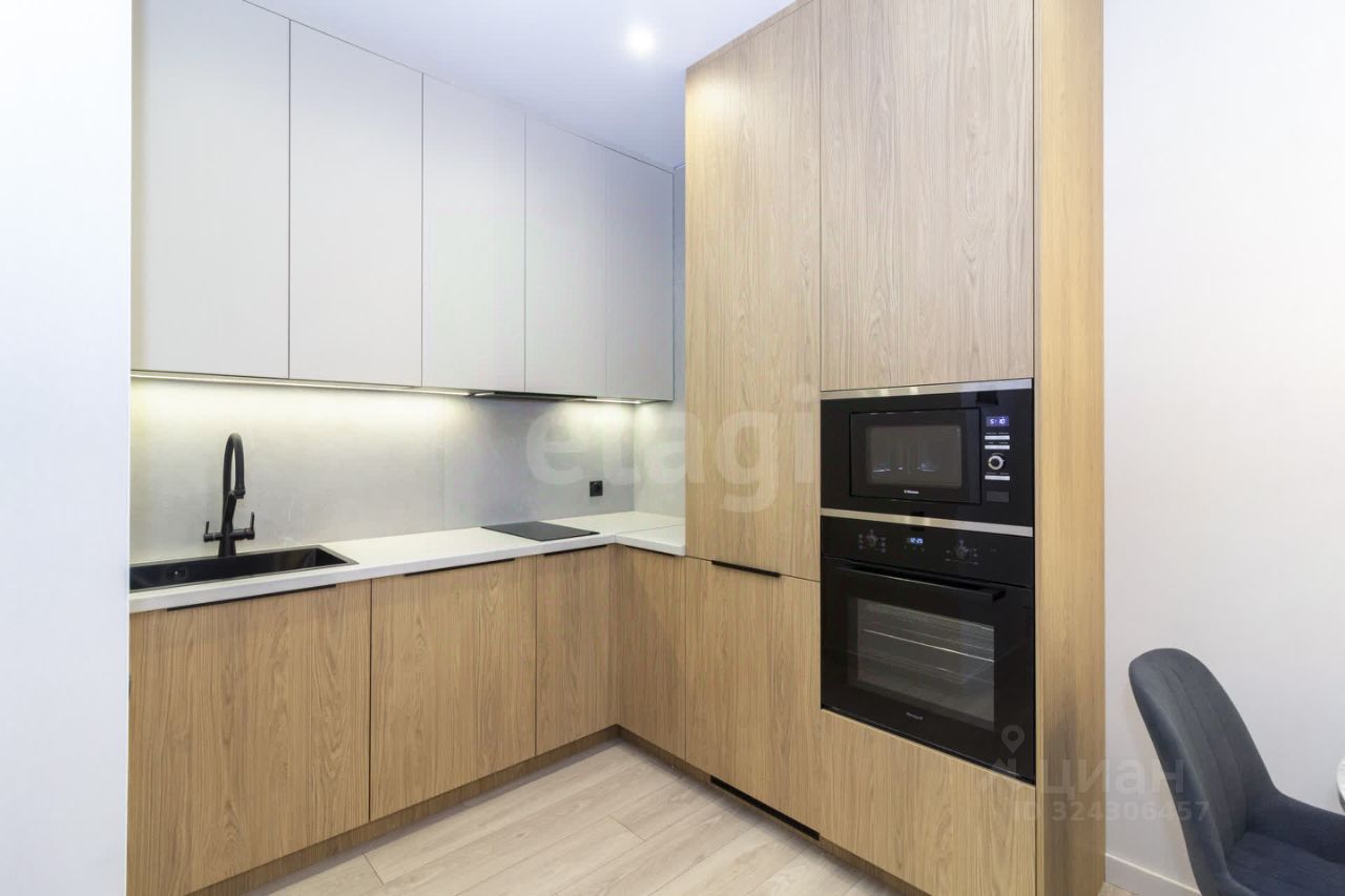 Квартира полностью готова к проживанию: выполнен качественный ремонт с продуманной планировкой. Кухня и шкафы изготовлены по индивидуальному проекту из материалов ЛДСП EGGER и МДФ с немецкой фурнитурой Hettich. Встроенная техника подобрана с учетом надежности и функциональности: холодильник No Frost, посудомоечная машина с тремя лотками и подсветкой, духовой шкаф, микроволновая печь, варочная панель и вытяжка. В зоне отдыха установлена LED-панель с сенсорной подсветкой, создающей мягкое вечернее освещение.