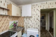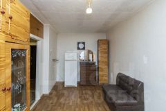 Отделка: стены оклеены обоями, потолки в комнатах и коридоре побелены, на кухне — подвесной потолок.
