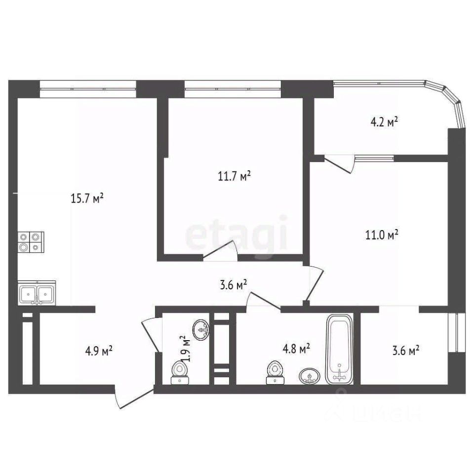 2+ квартира площадью 56 кв.м. на 22 этаже. Кухня-гостиная 15,7 кв.м. Просторная застекленная лоджия. Мастер-спальня. Телеметрия. Окна во двор, юго-восток.