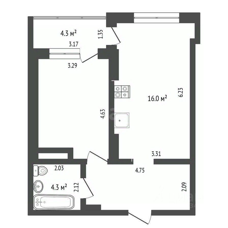 Удобная планировка: изолированные комнаты, санузел 4.3 м².