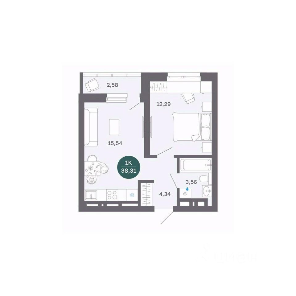 Общая площадь38,31 м²