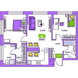 Продается 2-комн. квартира, 60,03 м²