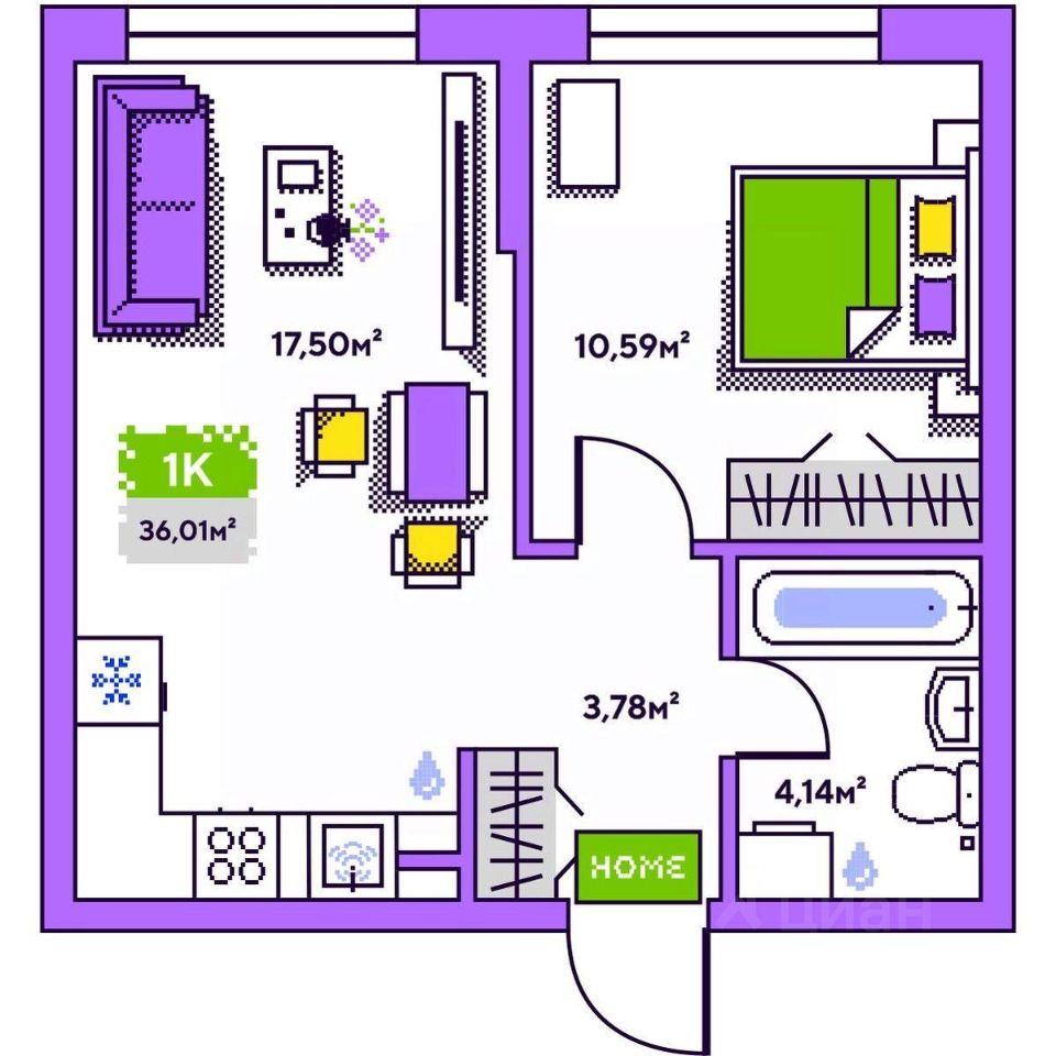 Общая площадь36,01 м²