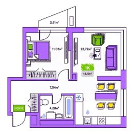 Продается 1-комн. квартира, 48,18 м²