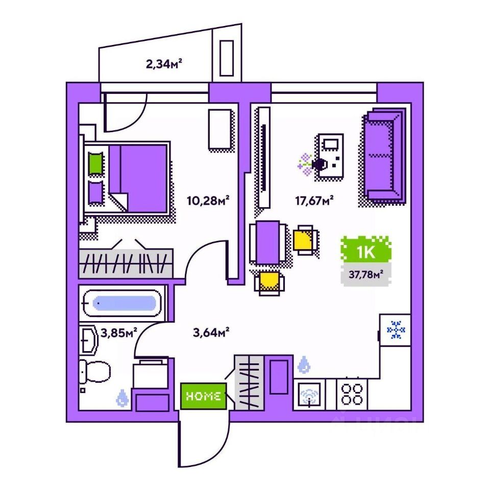 Общая площадь37,78 м²