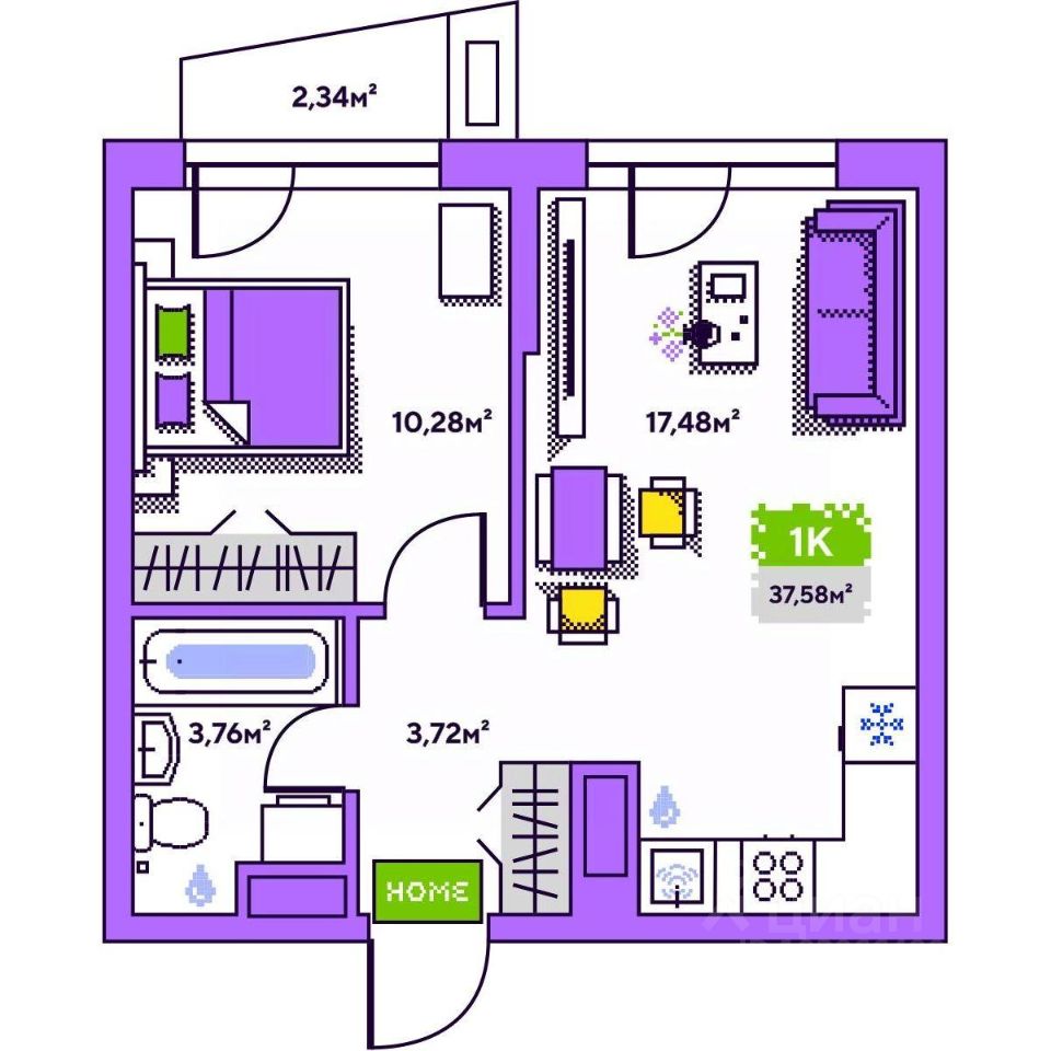 Общая площадь37,58 м²