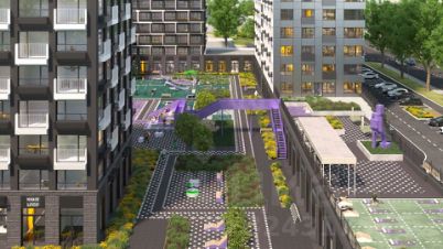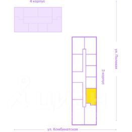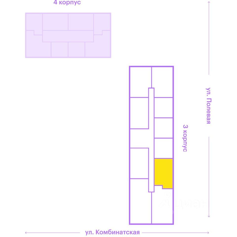 19-этажная архитектурная доминанта с эффектом паруса и камерная секция: французские балконы, сити-хаусы на 1-м этаже, 9 этажей в доме. Уступчатая структура формирует динамичный силуэт — новый акцент ул. Полевая. Металлические балконы создают градиент от тёмного к светлому, большие окна — панорамные виды на город.