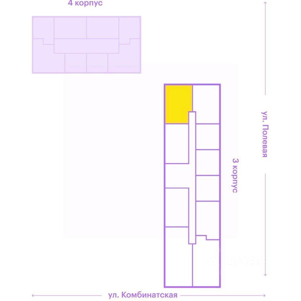 19-этажная архитектурная доминанта с эффектом паруса и камерная секция: французские балконы, сити-хаусы на 1-м этаже, 9 этажей в доме. Уступчатая структура формирует динамичный силуэт — новый акцент ул. Полевая. Металлические балконы создают градиент от тёмного к светлому, большие окна — панорамные виды на город.