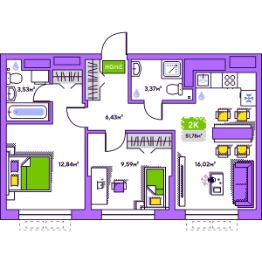 Продается 2-комн. квартира, 51,78 м²