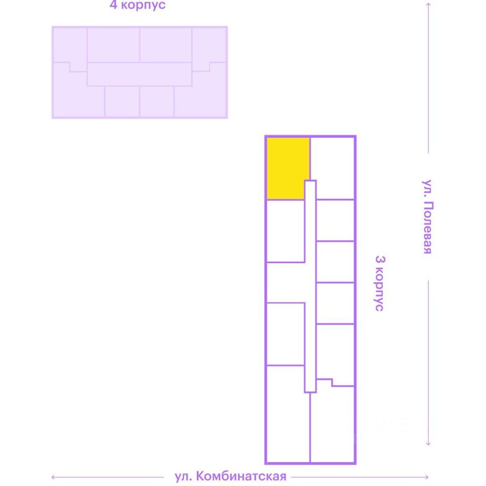 19-этажная архитектурная доминанта с эффектом паруса и камерная секция: французские балконы, сити-хаусы на 1-м этаже, 9 этажей в доме. Уступчатая структура формирует динамичный силуэт — новый акцент ул. Полевая. Металлические балконы создают градиент от тёмного к светлому, большие окна — панорамные виды на город.