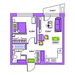 Общая площадь37,4 м²