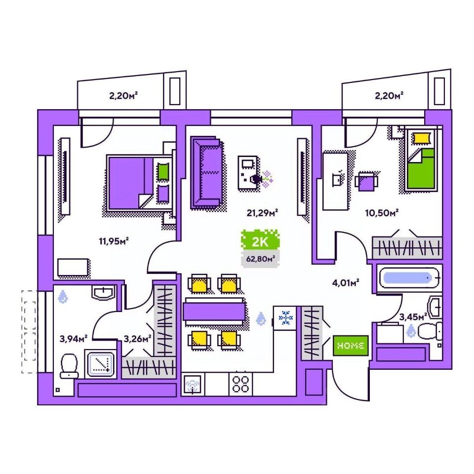Общая площадь62,8 м²