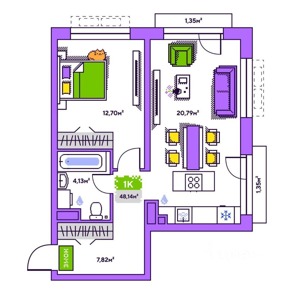 Общая площадь48,14 м²